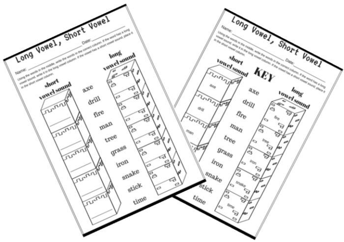 Long Vowel Short Vowel Categorizing Worksheet